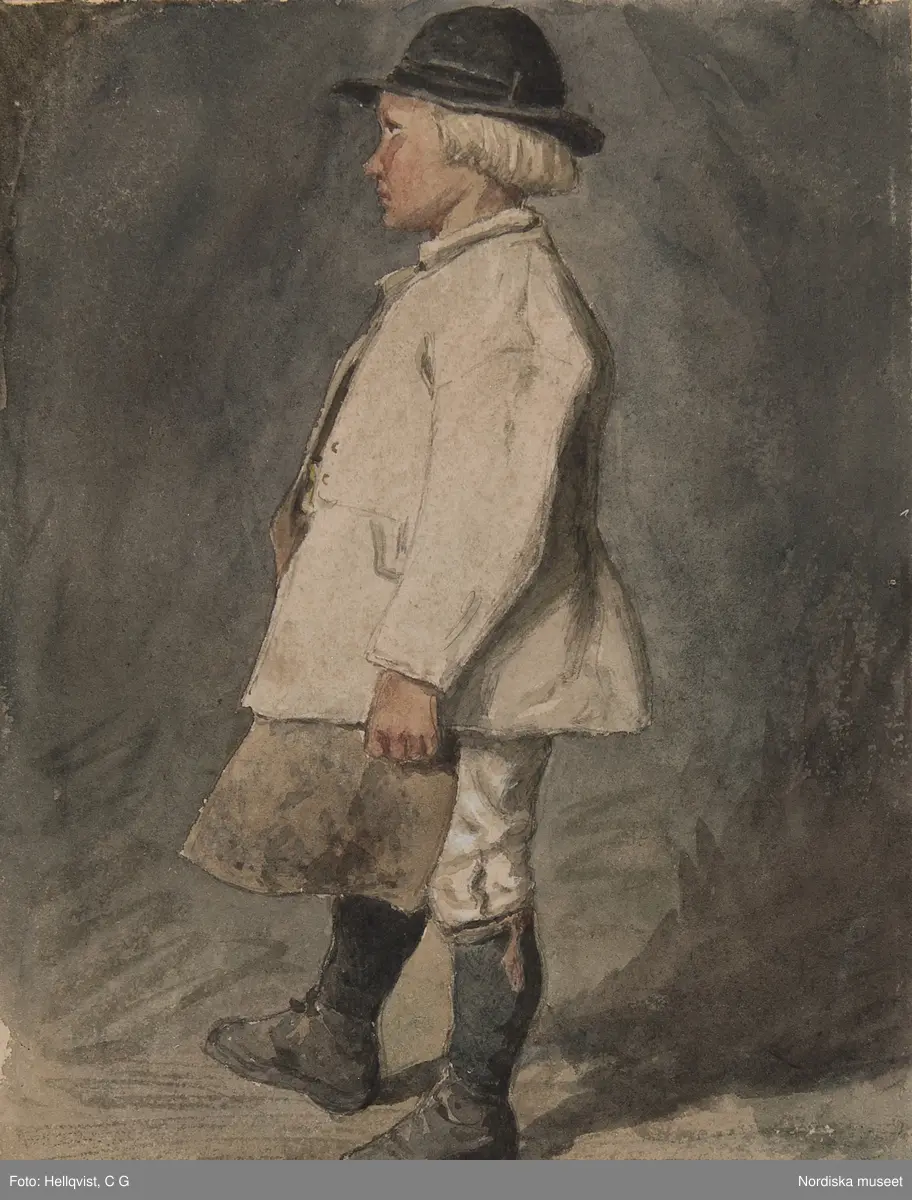 Pojke i vit tröja. Akvarell av C.G Hellqvist