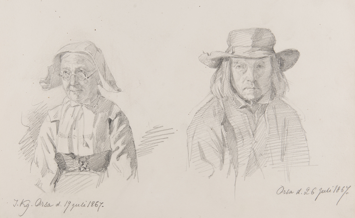Blyertsteckning av J. Kronberg. Kvinna Orsa 19 juli 1867 och man Orsa d 26 juli 1867.