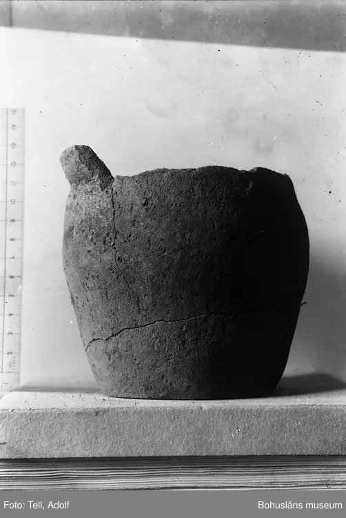 Enligt notering: "Täljstenskruka Spruken o Med Ett Hantag Från Medeltiden"