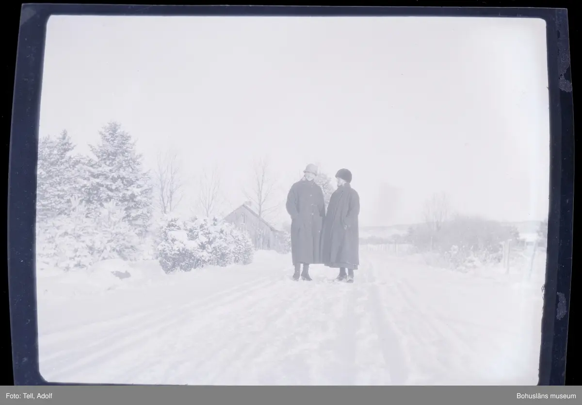 Två personer ståendes på en snötäckt väg.