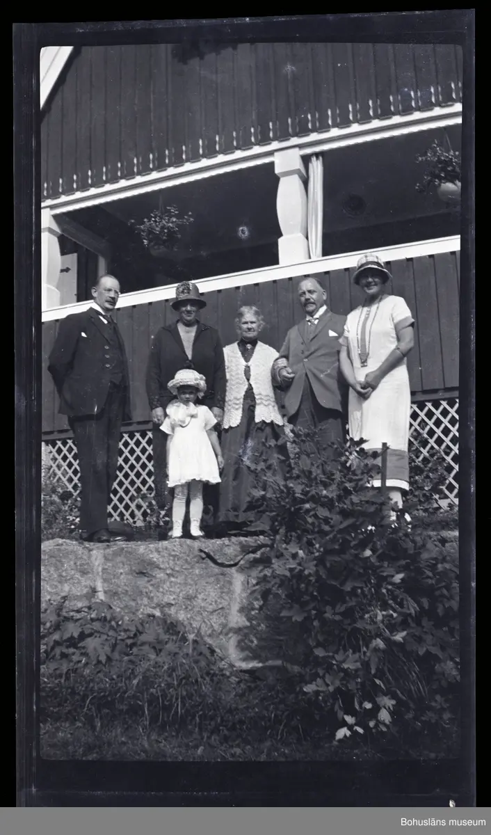 Sex personer ståendes framför en veranda.