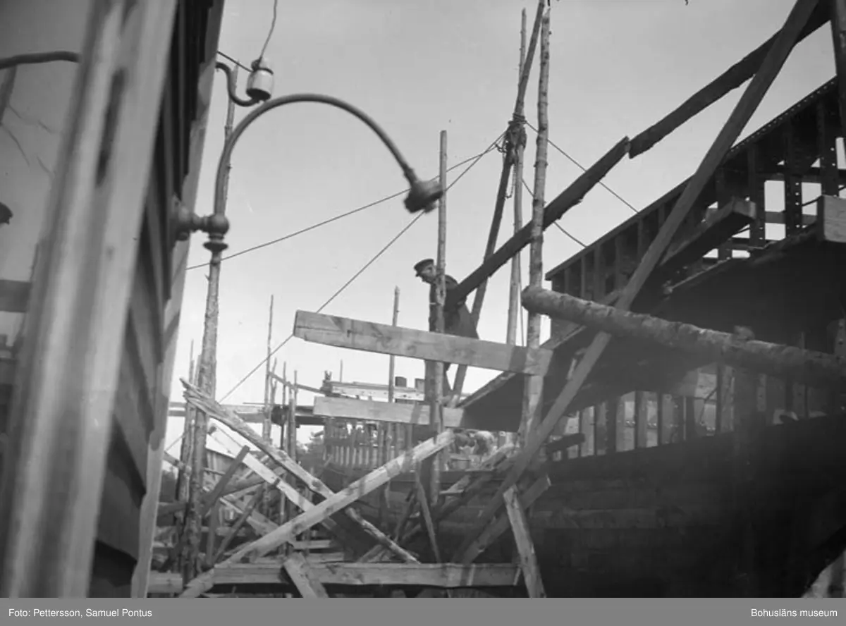 Text till bilden: "Byggnation av träfartyg troligen Hälleviksstrand".