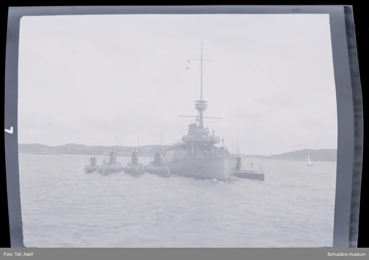 Enligt notering: "En Kryssare? o U: Båtar i Marstrands Hammn"