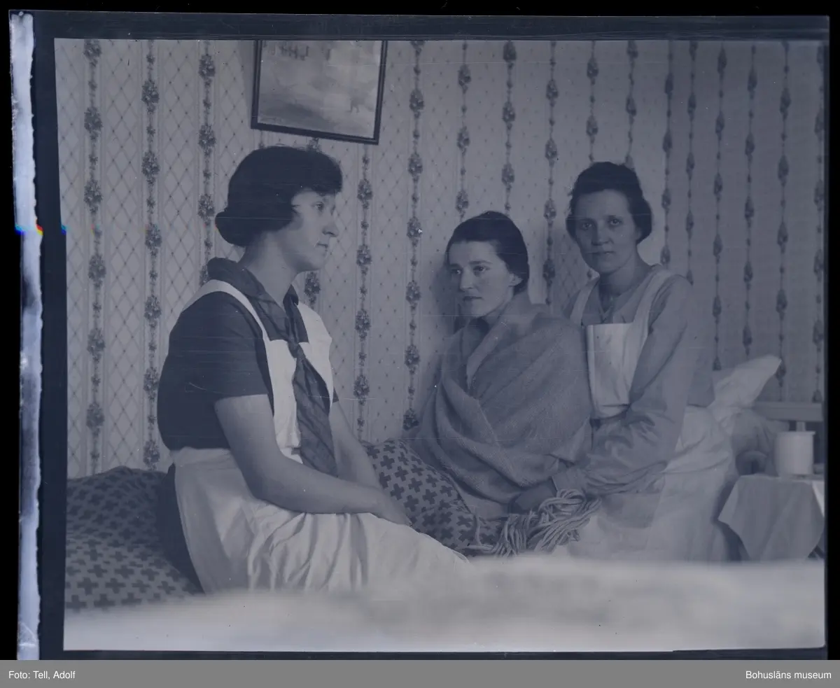Tre personer sittandes i en säng.