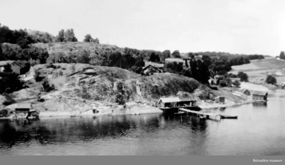 Enligt text på baksidan av fotot: "Slussen, Orust Simon Berndtssons sjöbod o brygga ca 1940".