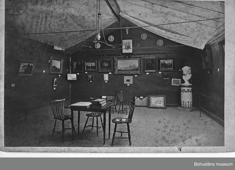 "Uddevalla museums äldsta tavelgalleri 1870-talets senare år, gåva av herr John Johnsson å Kristineberg vid Uddevalla 12/8 1918".