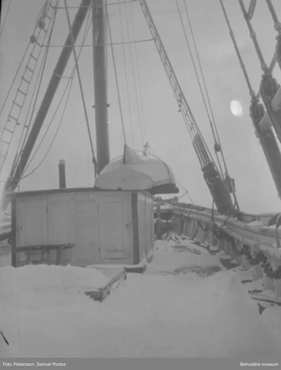 Text till bilden: "Däcksbild på segelskuta".
