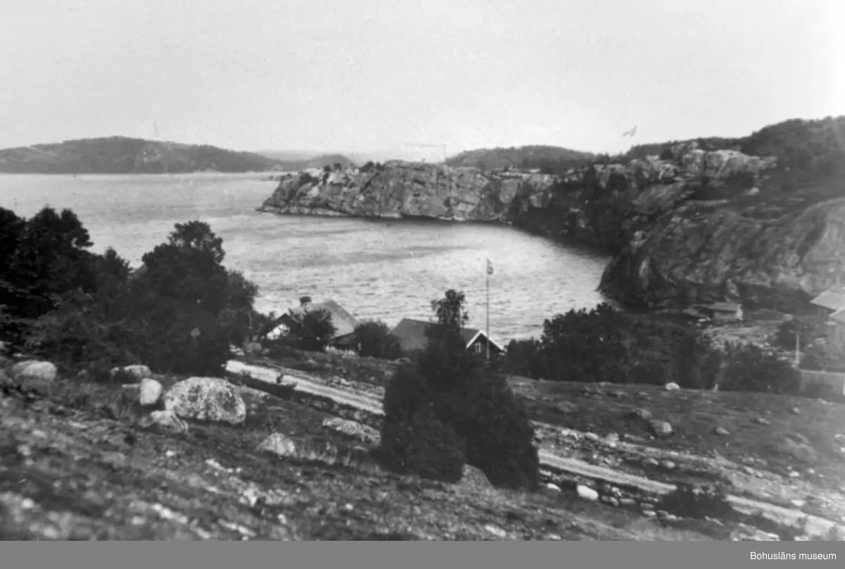 Enligt text på baksidan av fotot: "Slussen, Orust med Runnsberget och i bakgrunden Lilla Hasselön - Sunneröa. Tidigt 1900-t".