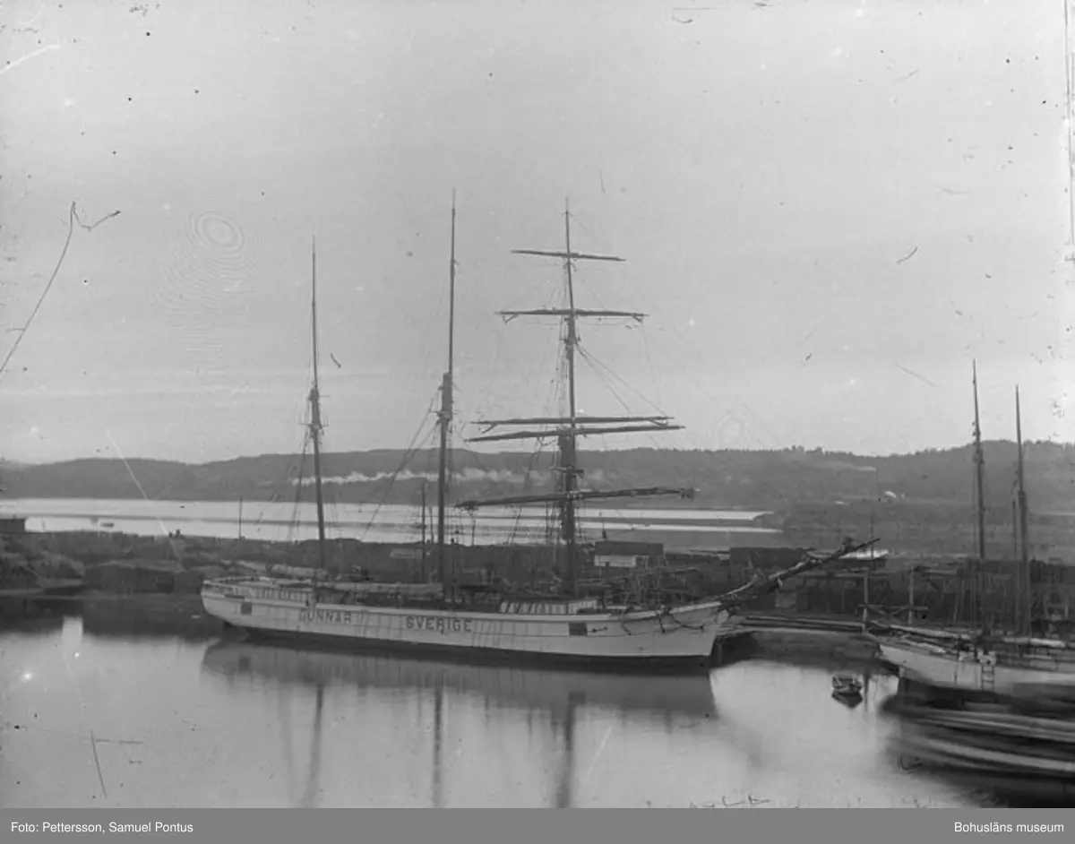 Text till bilden: "Skonerten (Gunnar) ägd o redad av S.P. Pettersson".