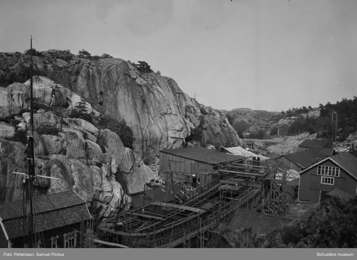 Text till bilden: "Byggnation av träfartyg trol. Hälleviksstrand".