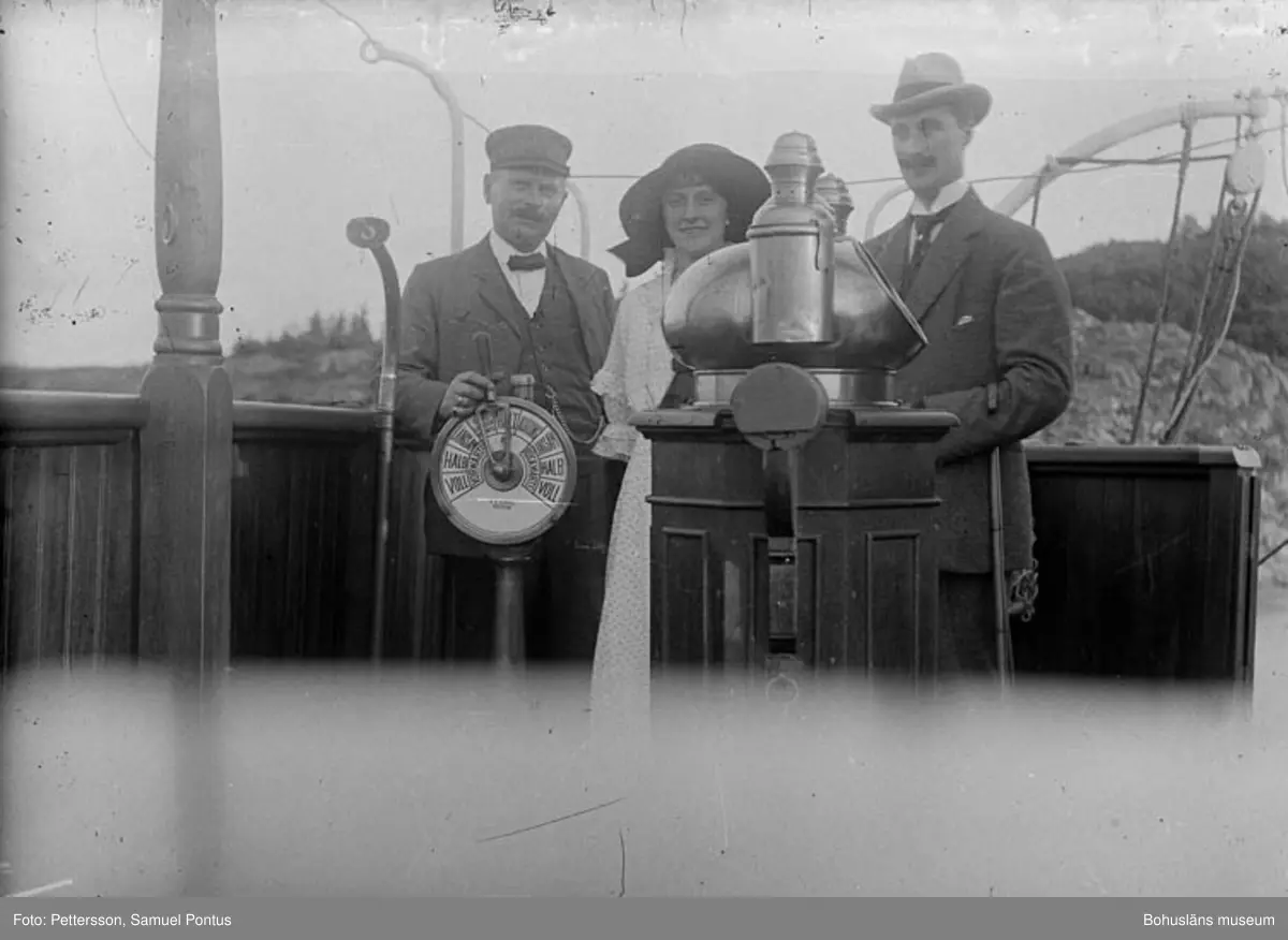Text till bilden: "Herrskap vid maskintelegraf på Ångaren".