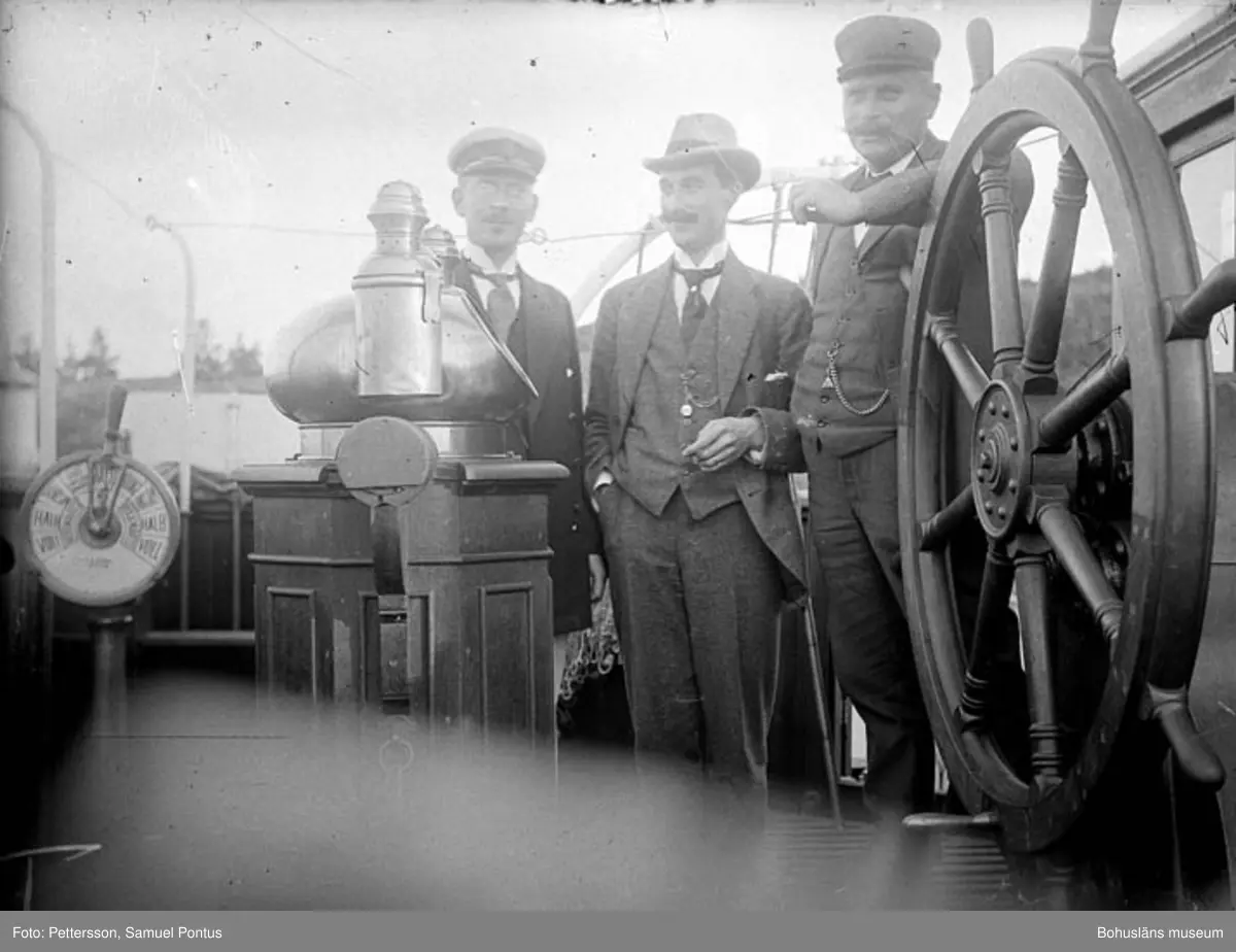Text till bilden: "Herrskap vid maskintelegraf på Ångaren".
