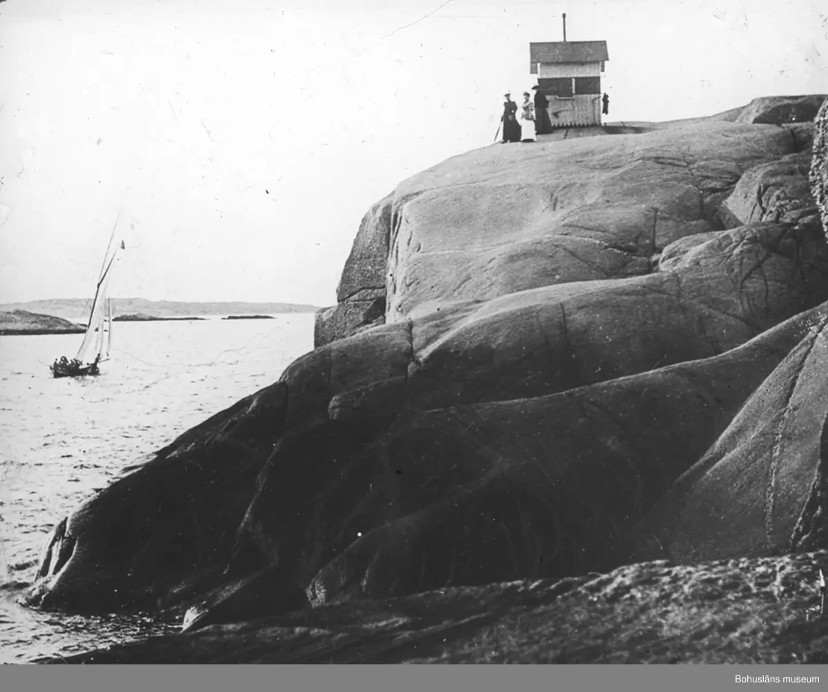 Medflöljande text: "Västkustlandskap med liten fyr".