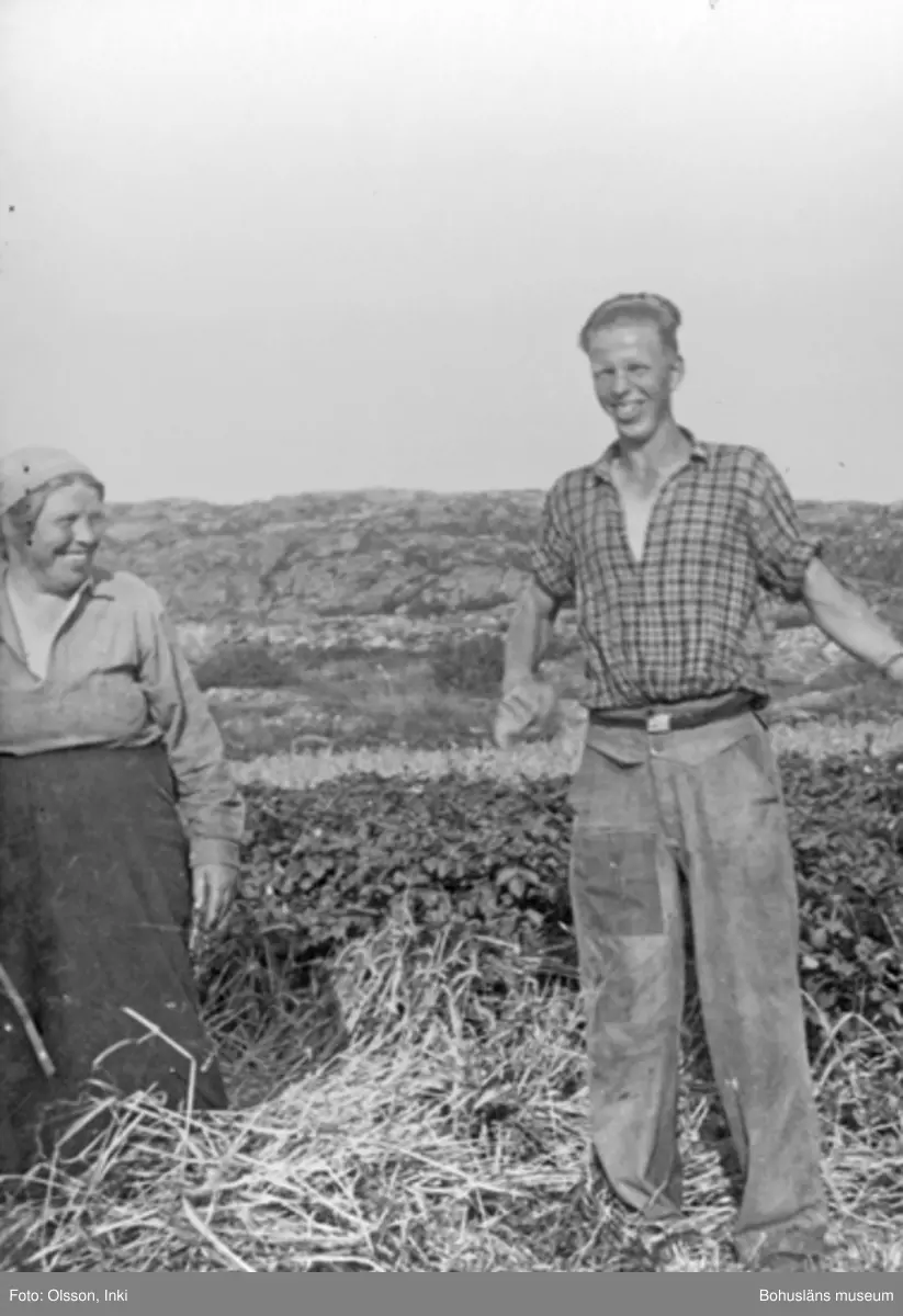 "Skörd på Änga" Ragnar "spelar" George Formby med sin banjo".