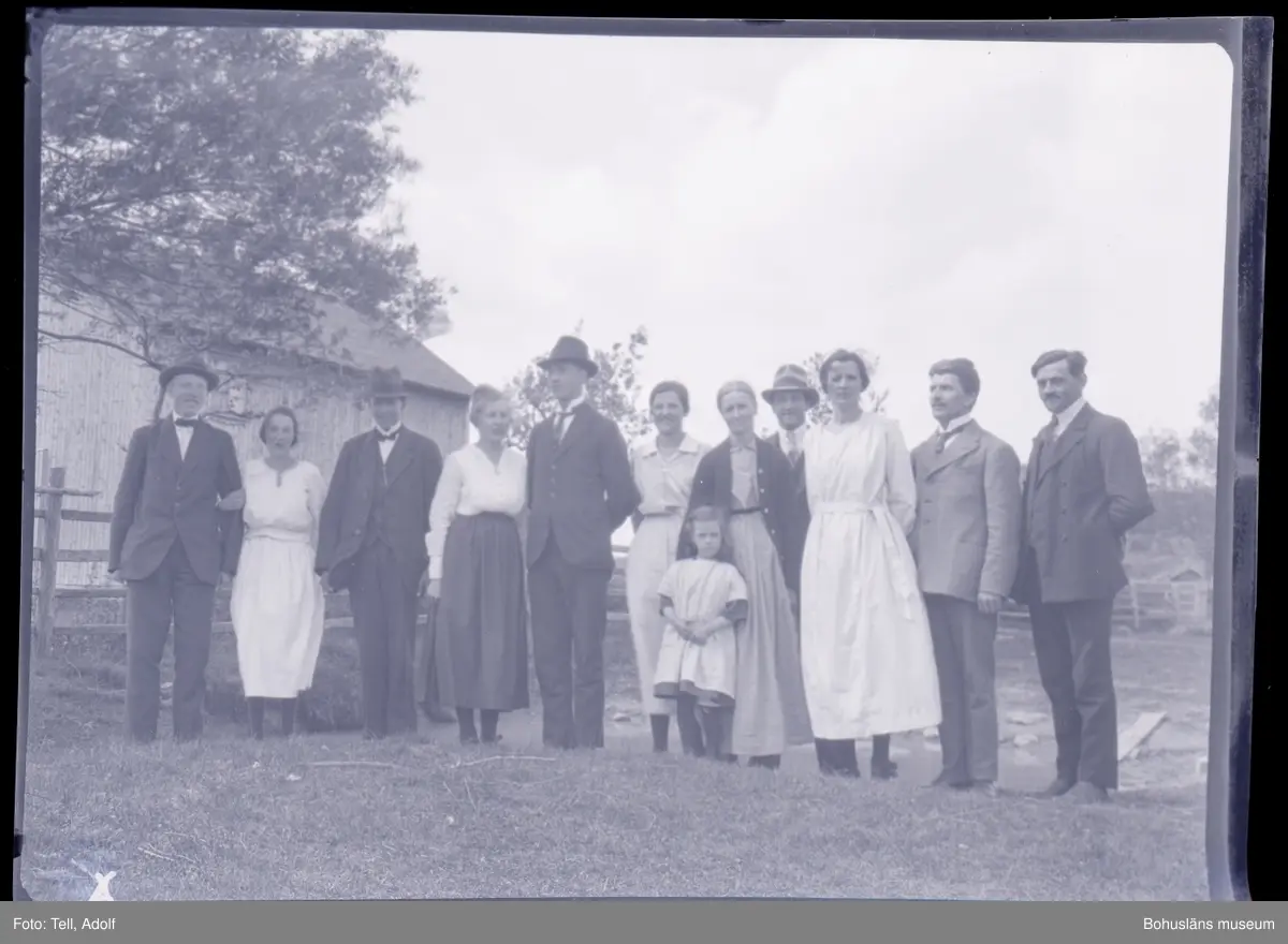 Nio personer samlade frmaför ett hus för ett gruppfotografi.
