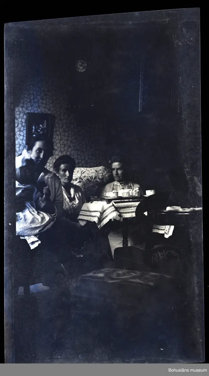 Fyra personer sittandes vid ett uppdukat fikabord.