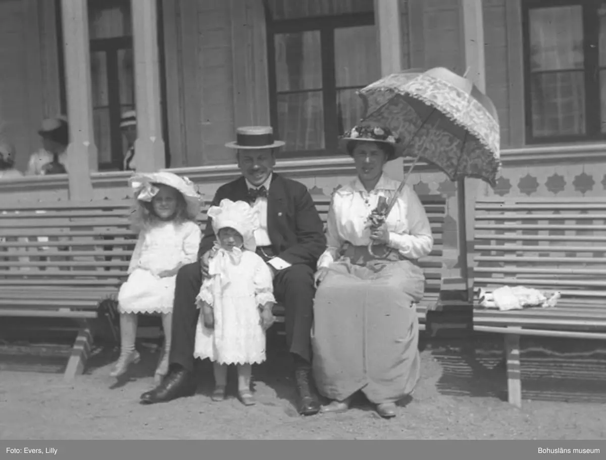Pappa, mamma och barnen utanför varmbadhuset i Lysekil.