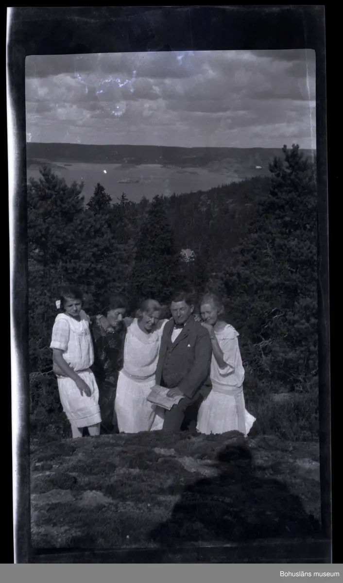 Fem personer i en skogssluttning.