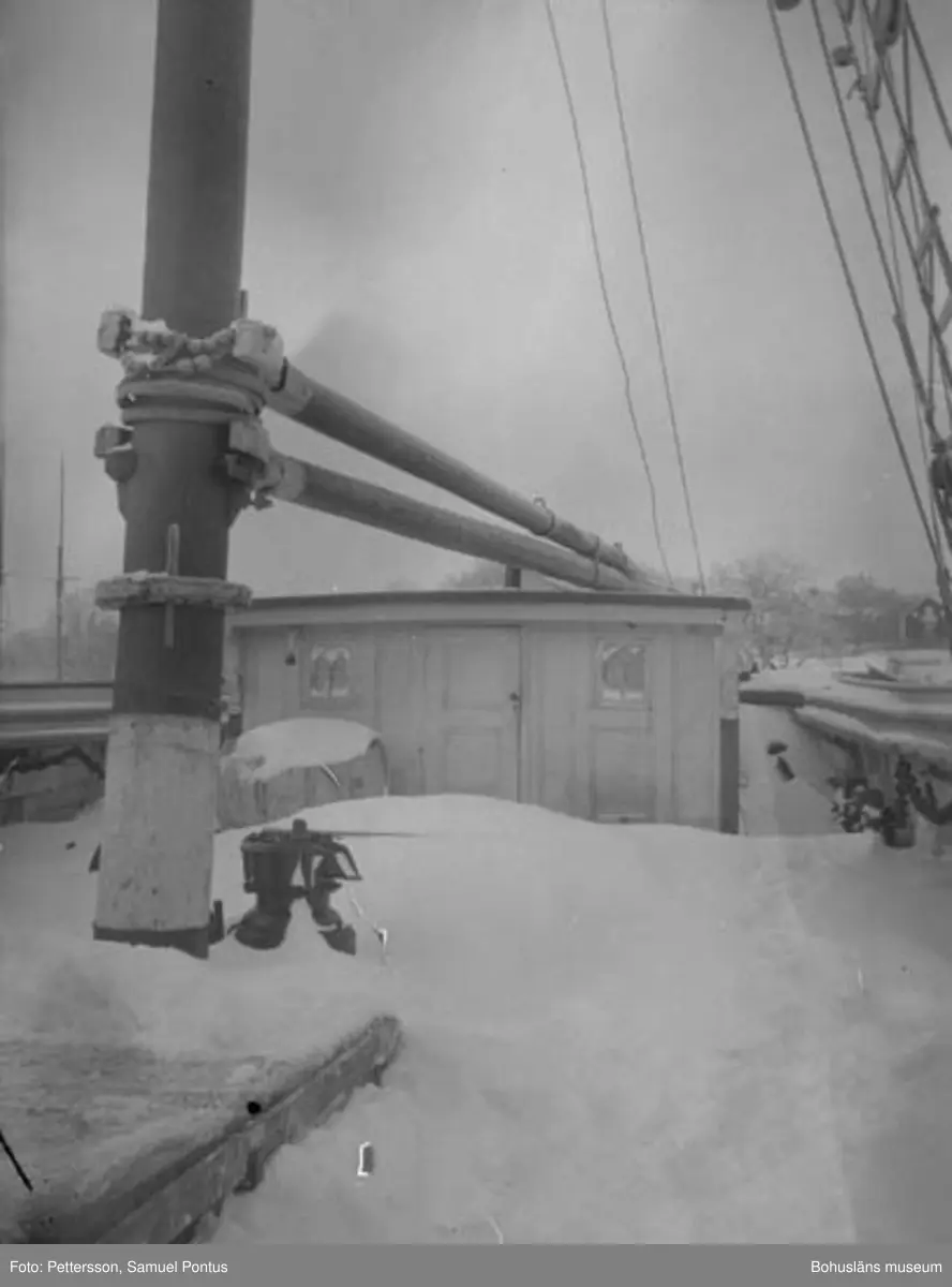Text till bilden: "Däcksbild på segelskuta".