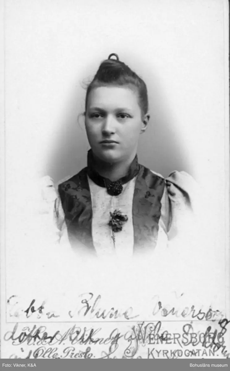 Enligt text på fotot: "Ebba Blume Venersborg dotter till gamle doktorn gift m J. Jarle där".