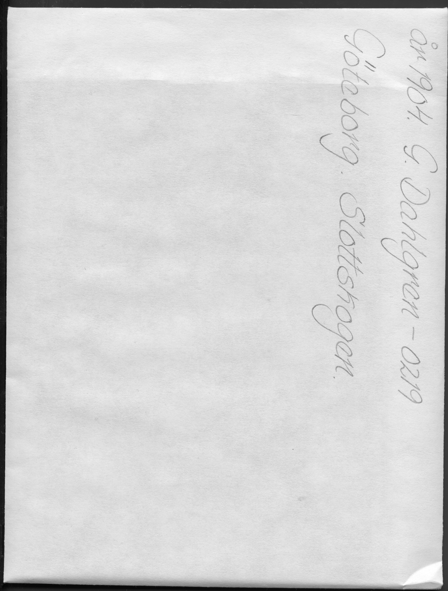 På kuvertet står följande information sammanställd vid museets första genomgång av materialet: Slottskogen.