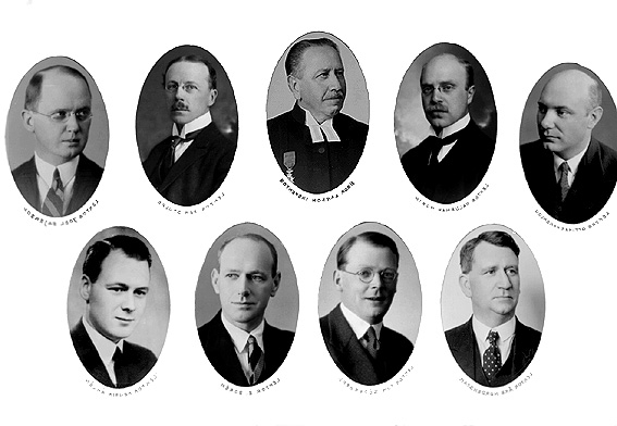 Seminaristernas Kamratalbum. År 1937. Lektor Ottimar Haneklou. Lektor Valdemar Molin. Bror Larson. Inspektor. Lektor Per Stolpe. Lektor Joel Fajersson. Lektor Åke Nordenstam. Lektor Tom Söderberg. Lektor E. Borén. Lektor Henrik Åhlén.