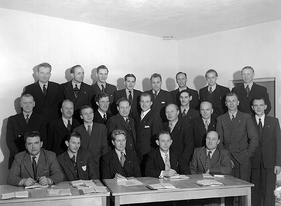 Större grupp män vid firande av Karlstads Bleck & Plåtslagareförenings 50 års jubileum.