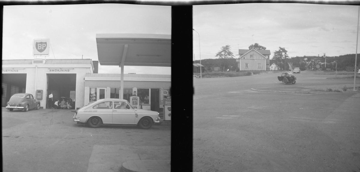 Två bilder. Vänster bild, BP-macken vid korsningen E18/Arvikavägen, Årjäng.