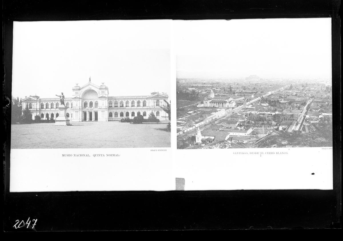 På kuvertet står följande information sammanställd vid museets första genomgång av materialet: (Två bilder) Museo Nacinal Quinta Normal. Santiago Desde El Cerro Blanco.