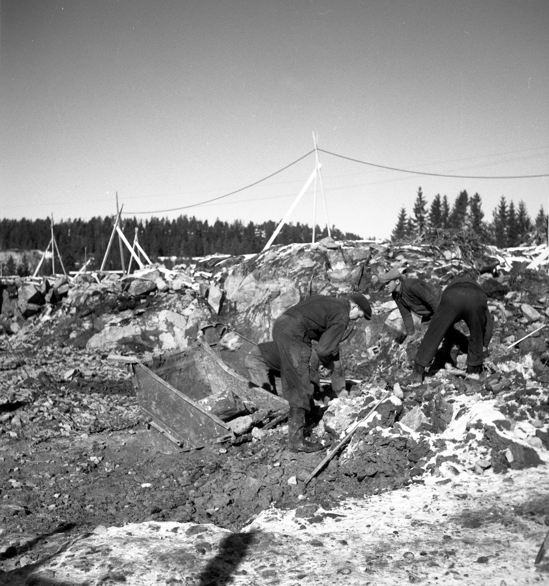 Bildserie tagen 1947 som visar mark- och grundarbeten inför starten av byggandet av etapp 2 av kooperativa förbundets Svenska Rayon-anläggning i Vålberg. Grumsföretaget Byggnads AB Nordolf antogs som entreprenör för arbetet.