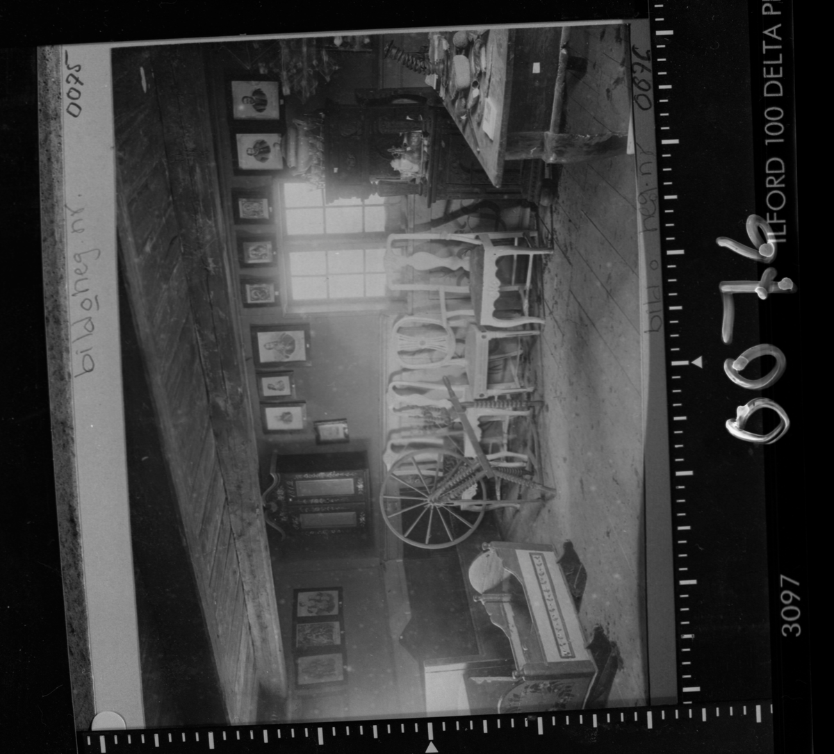 På kuvertet står följande information sammanställd vid museets första genomgång av materialet: Interiör hembyggdsmuseum.