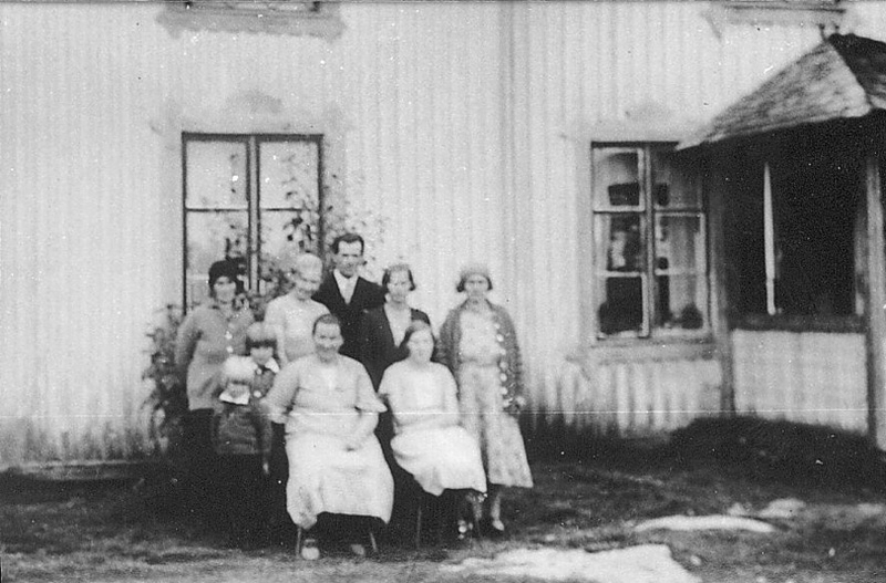 Övre raden fr.v: Nanny Martinsson, Edit Jonsson, Johan Olsson, Alma Olsson (fru till Johan), Anna Eriksson, Kristen.