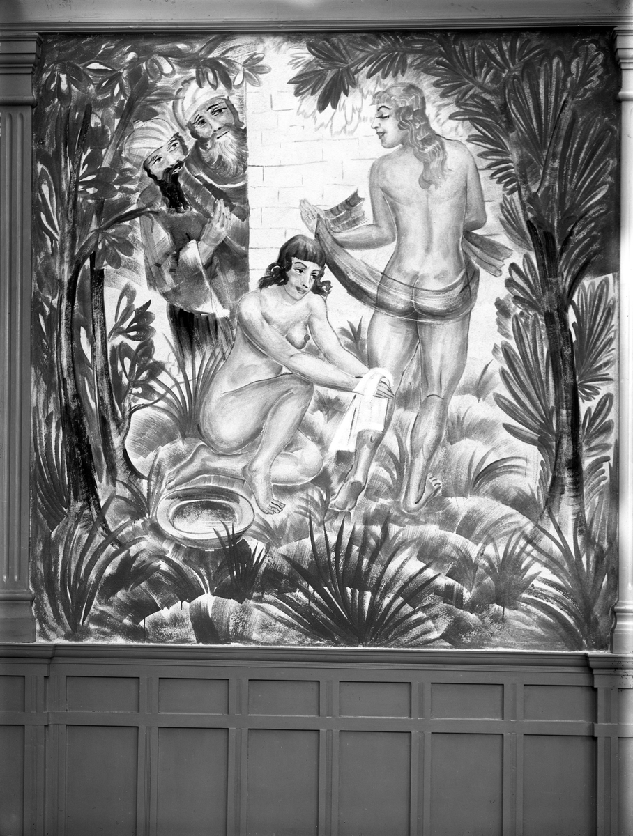 Väggdekoration i Grand hotells matsal utförd år 1929 av Figge Fredriksson. Anspelar troligen på Bibelns "Susanna i badet".