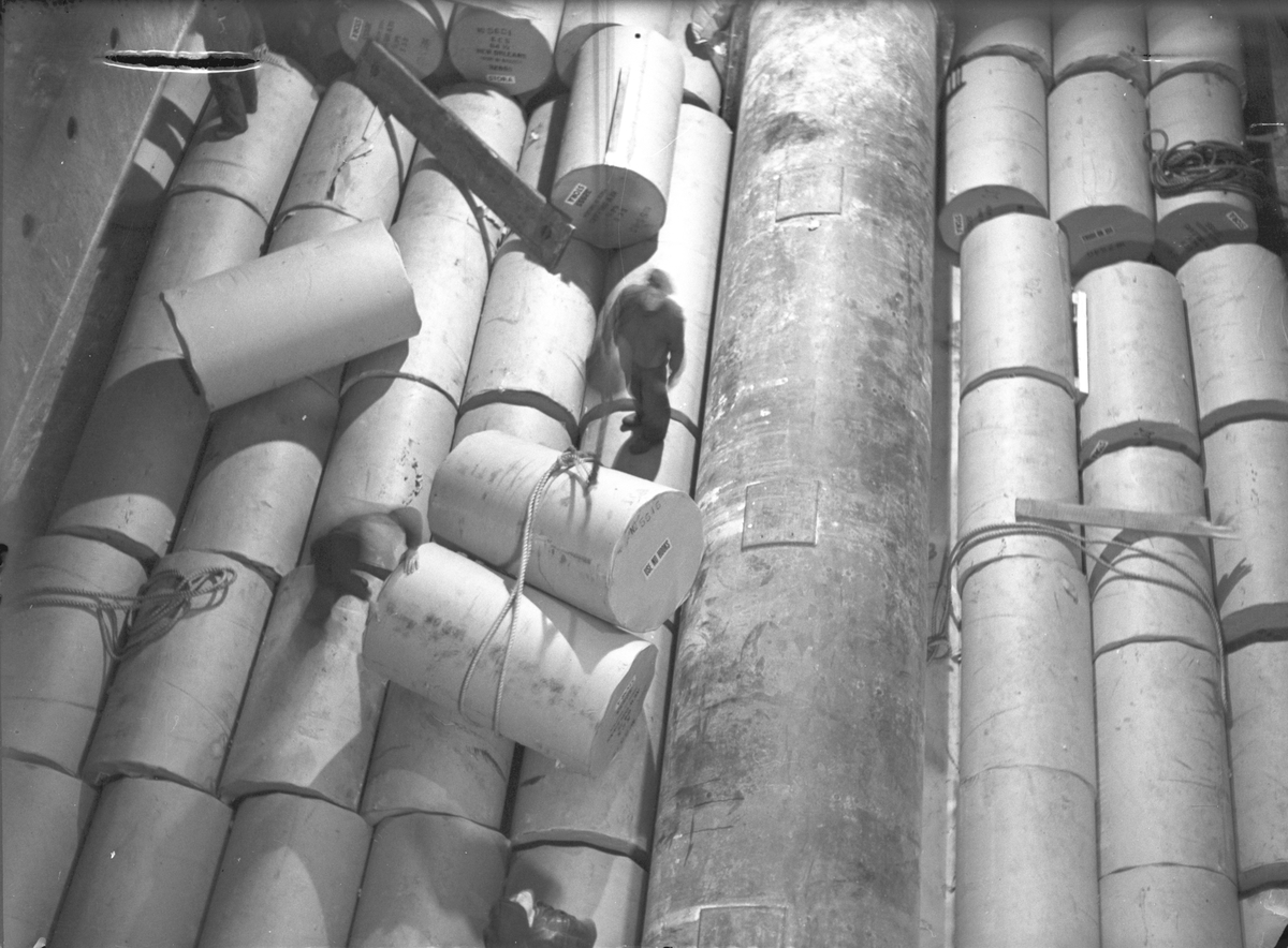 M/S Vretaholm lastar papper. 18 januari 1949.