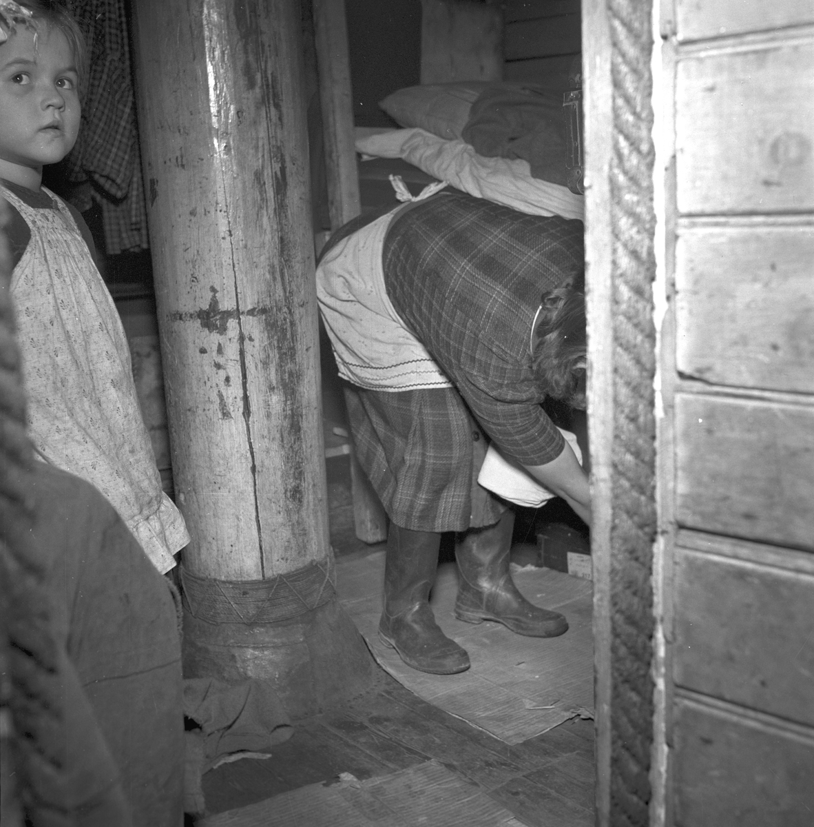 Titel: Flyktingfamilj som bor på båt. 10 december 1948. Reportage för Arbetarbladet.