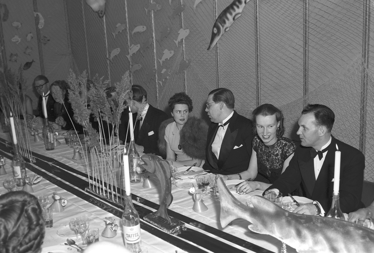 Sportfiskeklubbens "Midvinterbal" på Baltic. 17 februari 1949. Beställt genom Sandström, Byggmästargatan 13 Gävle.