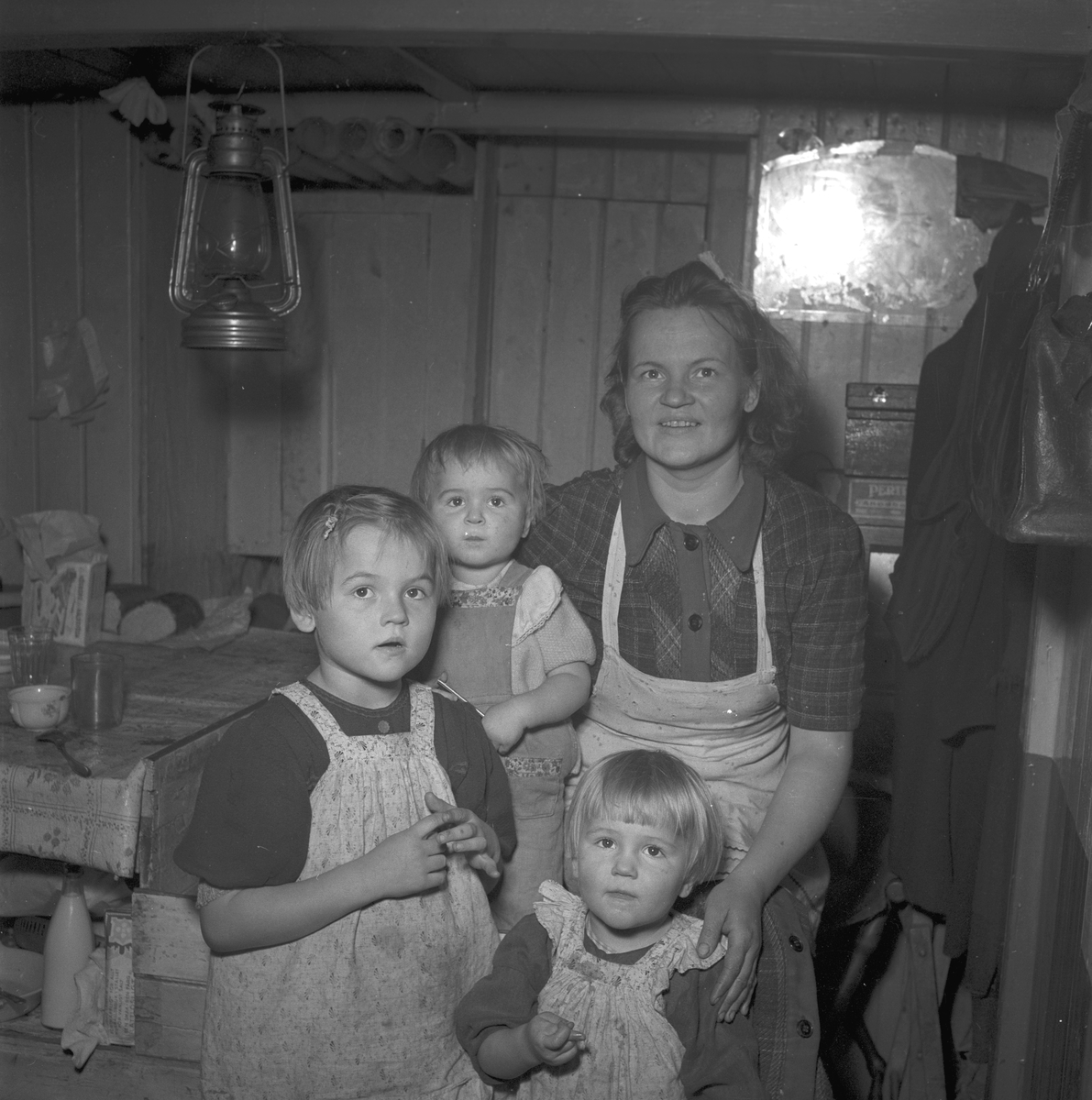 Titel: Flyktingfamilj som bor på båt. 10 december 1948. Reportage för Arbetarbladet.