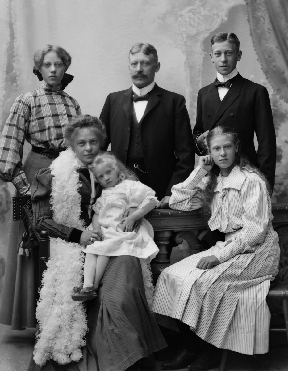 Porträtt från fotograf Maria Teschs ateljé. Familjebild. Familj.