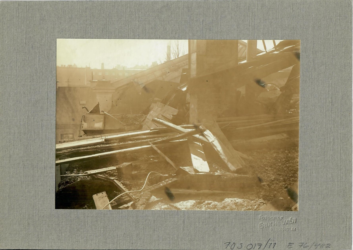 Förödelse efter brand på Ljunglöfs snusfabrik 1918