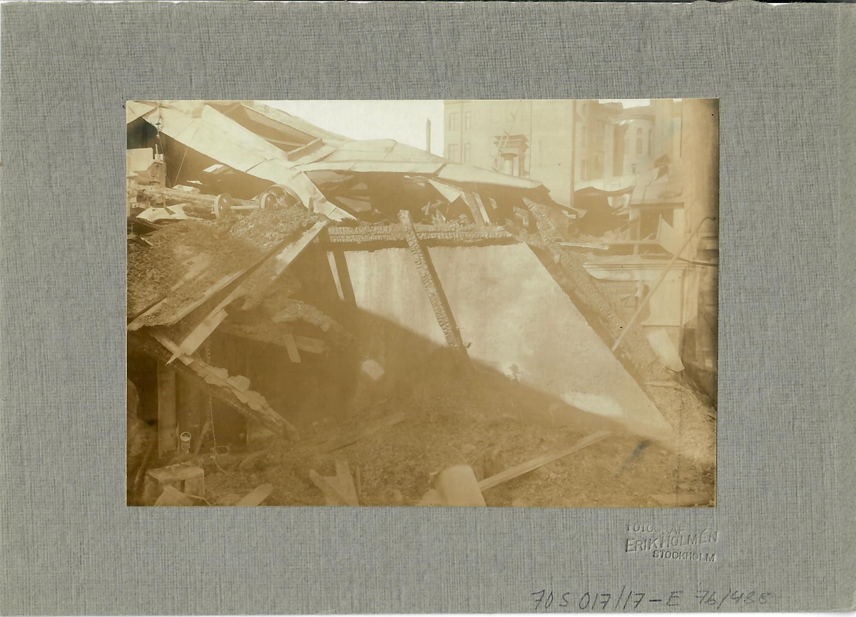 Förödelse efter brand på Ljunglöfs snusfabrik 1918