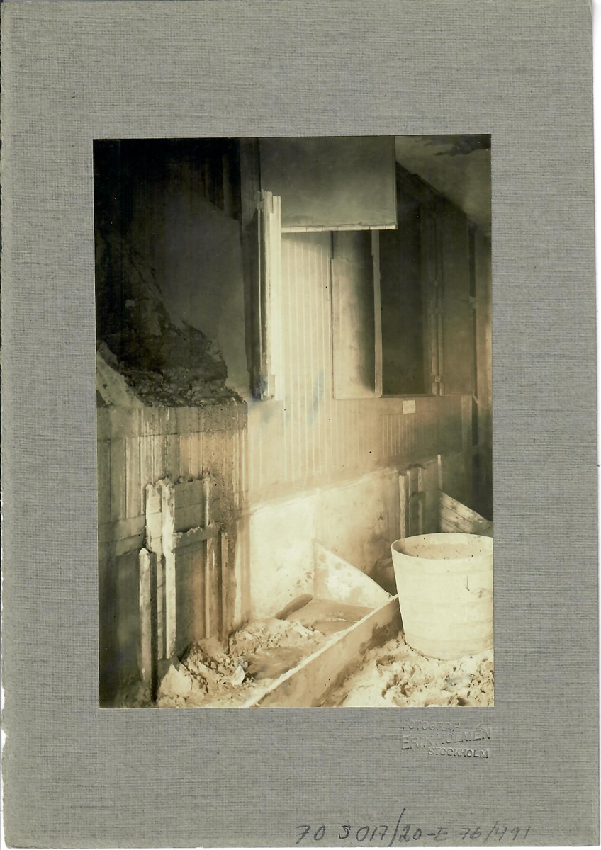 Titel: Förödelse efter brand på Ljunglöfs snusfabrik 1918