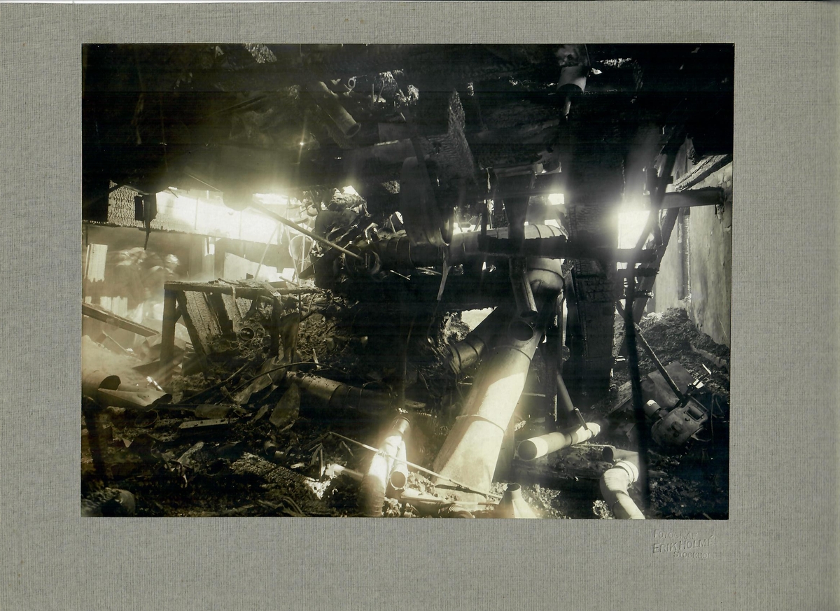 Titel: Förödelse efter brand på Ljunglöfs snusfabrik 1918