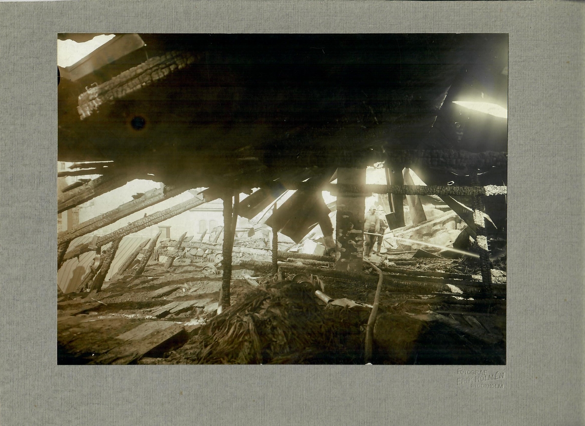 Titel: Förödelse efter brand på Ljunglöfs snusfabrik 1918