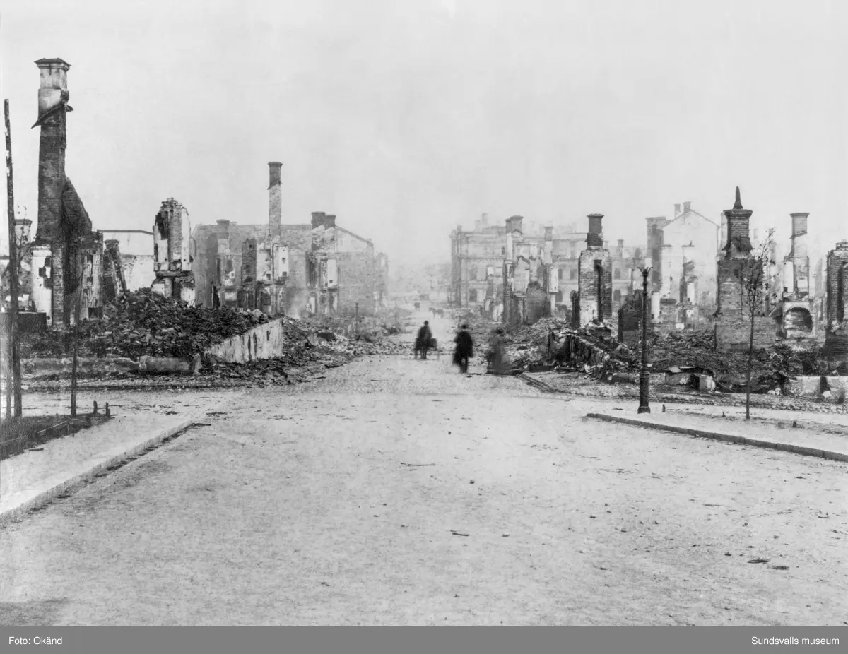 Sundsvalls stadsbrand 1888. Kyrkogatan österut.