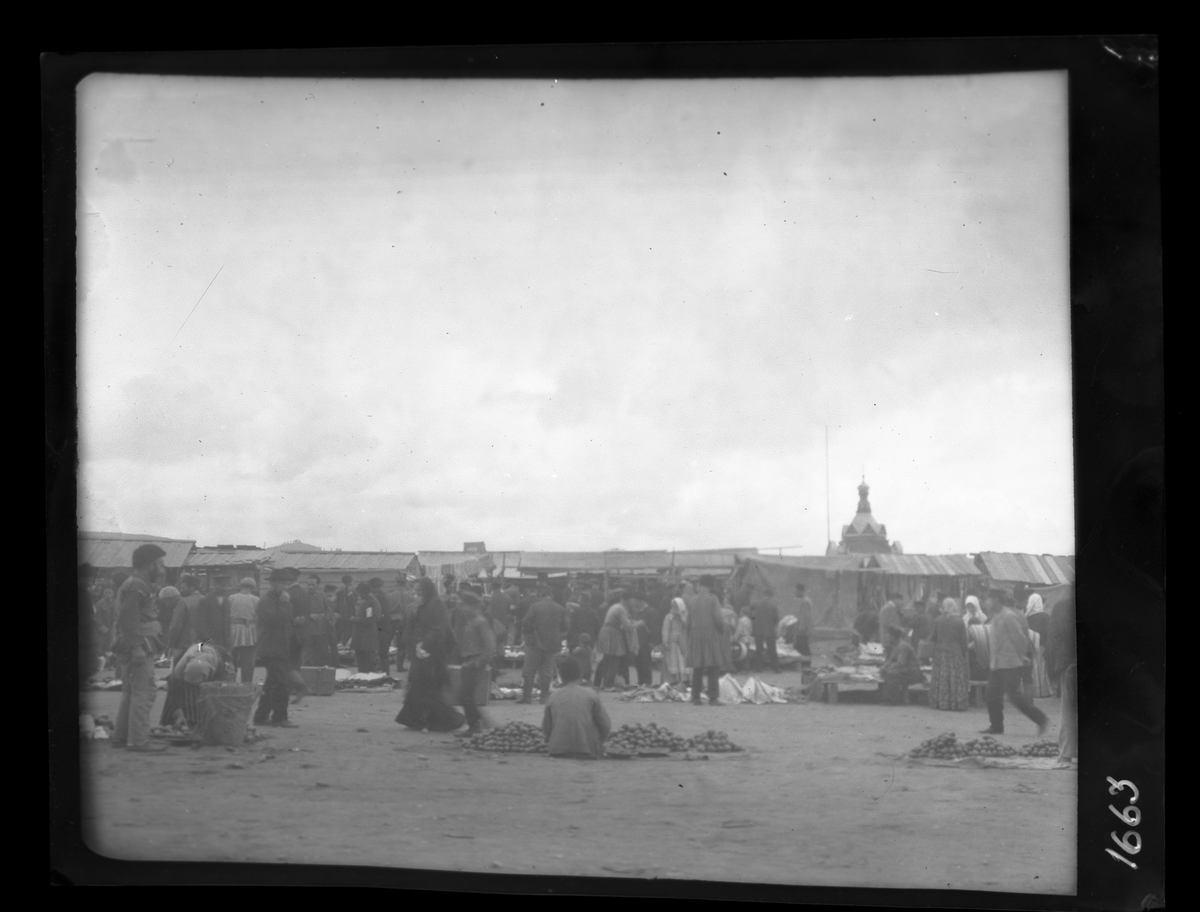 På kuvertet står följande information sammanställd vid museets första genomgång av materialet: Torgmarknad.