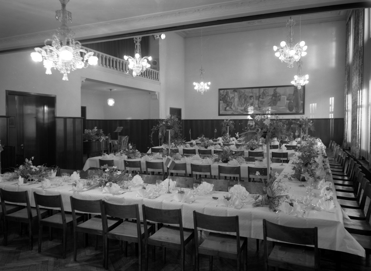 Grand hotells festvåning uppdukad för Trädgårdsmästarföreningen år 1947.