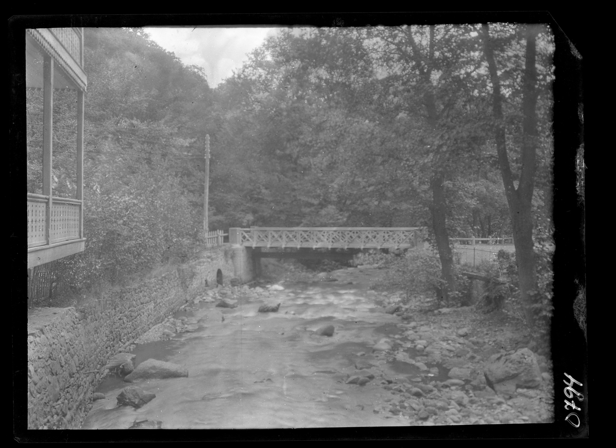På kuvertet står följande information sammanställd vid museets första genomgång av materialet: Gångbro över en älv.