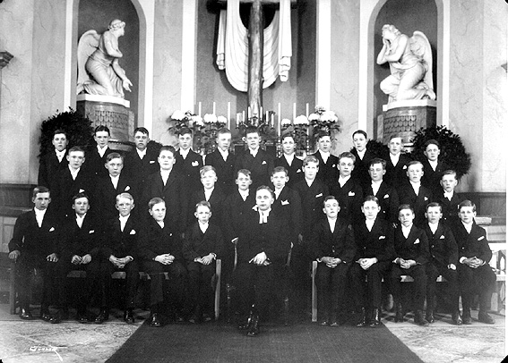 Präst med pojkar vid konfirmation i Domkyrkan.