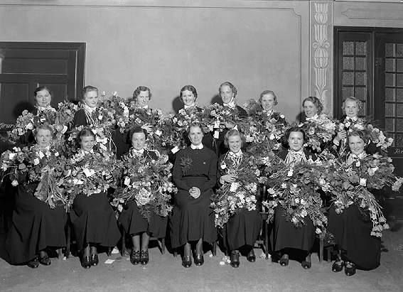 Större grupp nyutexaminerade sjuksköterskor med lärare.