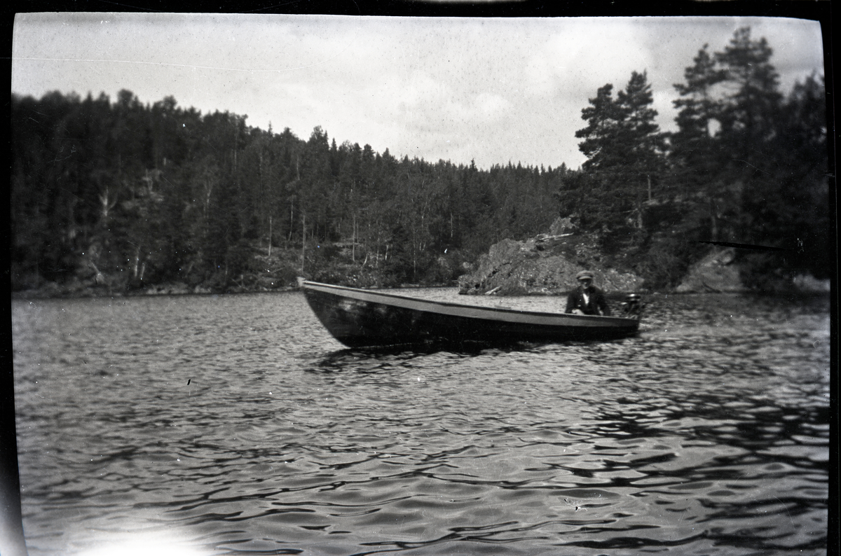 Man i båt på Stora Le.